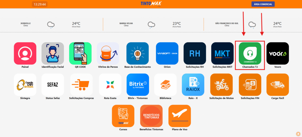 1 – Acessar o nosso Hub , e ir no ícone do chamados T.I ;