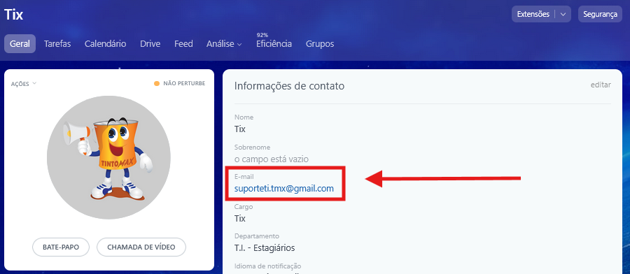 Nesse campo, onde solicitamos que adicione o e-mail do ( Bitrix24 ) , para a abertura do chamado. Tem que ser o e-mail que está vinculado a sua conta do Bitrix24. Por exemplo :