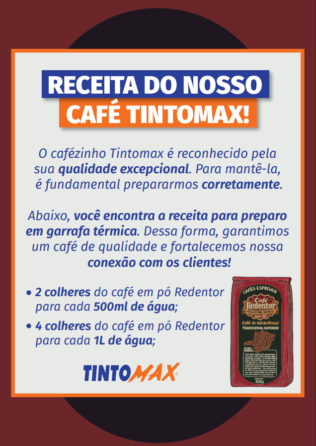 < Todos os tópicos Principal Artigos Gerais Receitas Receita Café Tintomax Imprimir Receita Café Tintomax Postado16/07/2024 Atualizado21/11/2025 PorTintomax Descrição Receita para o nosso delicioso café Tintomax!